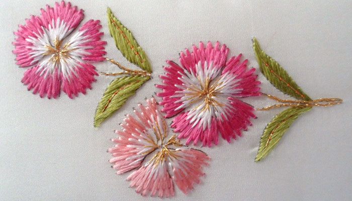 This course is designed for everyone regardless of whether they have done Japanese Embroidery before or not.  Each student will be able to work on a suitable design for the course which will introduce several new stitches and methods of stitching using a tekobari.  All the designs will be worked with Japanese silks and metals.
